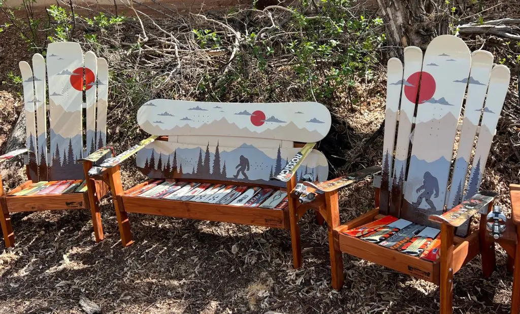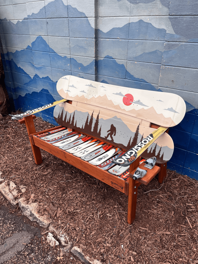 This stylish Earth tones. The Bigfoot/Sasquatch Mountain Stroll Snowboard Bench is made from repurposed snowboards and skis, ideal…