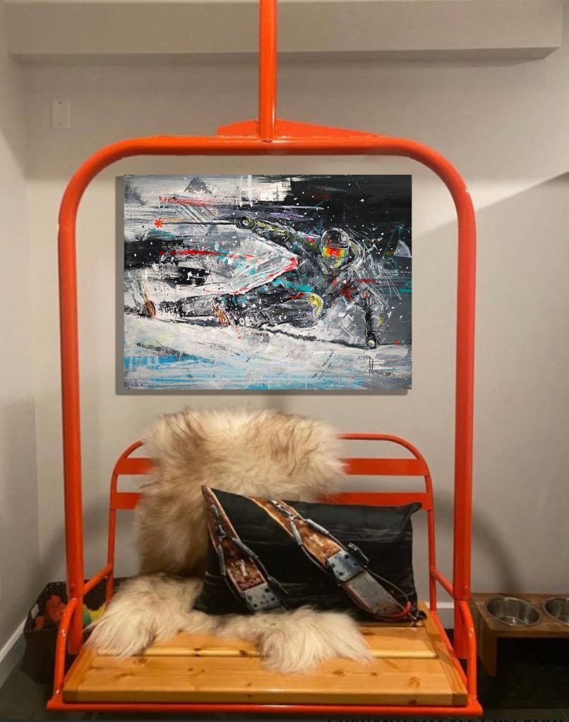 Mountain House Combo – “3-person Chairlift + 26″x35” Skier wall print