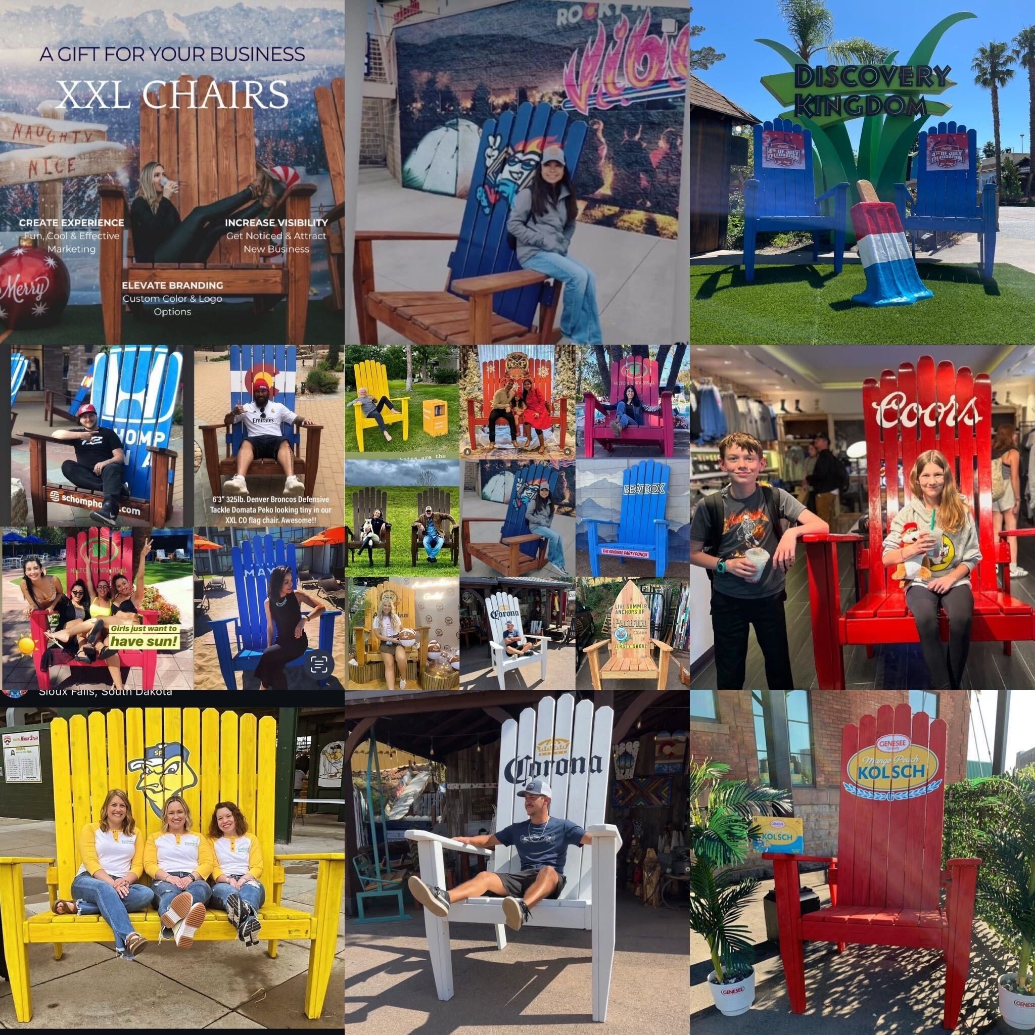 - Our XXL chairs are available in 3 heights and multiple widths. The are stained in 15 standard colors and we can use a custom brand color if you prefer.
