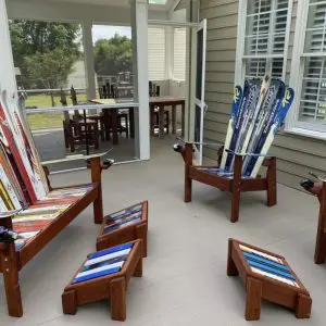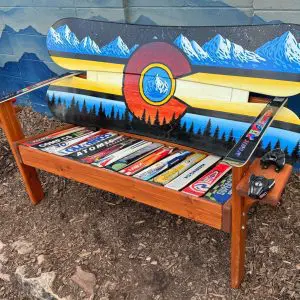 This photo is a custom adirondack snowboard mural bench we just did for a customer who came in and wanted to surprise her husband for their 10th anniversary. She brought in 2 photos from their honeymoon and asked us to work them into a painting on a snowboard bench. 2 weeks later, she was so impressed and thrilled to pick up her surprise gift. We’re guessing her husband was more than thrilled with this one. Amazing work from our artists and builders!