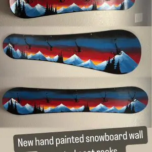 Sunset Mountain Mural Hand Painted Horizontal Snowboard coat hook with 5 triple hooks