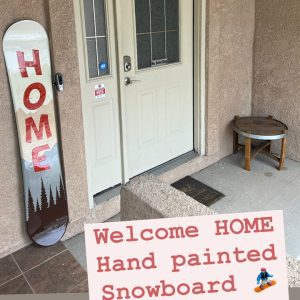 Hand painted snowboard HOME wall art. Perfect for the front of any home or condo!