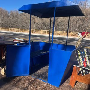 - Three Person Ski Lift Pictured Measures roughly 18″ deep, 57″ wide and 51″ Tall