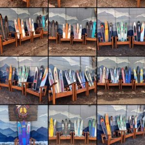 Available in original ski graphics, it can also be custom hand-painted with oil exterior paints, this ski bench is just a sample of what we can customize for you. Buy this one now or call us for a custom!