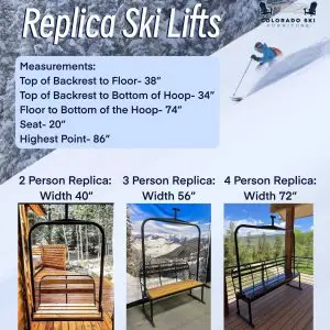 - Three Person Ski Lift Pictured Measures roughly 18″ deep, 57″ wide and 51″ Tall