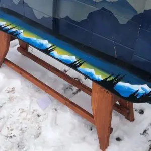 Colorado Mountain Mural Single Snowboard Bench/ Coffee Table