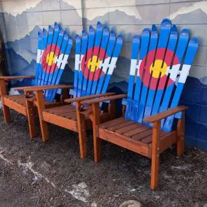 One of our top sellers for the past several years, you can’t go wrong with this beauty. Our Colorado Flag Ski Porch Swings will display your love of the slopes all year long. Colorado Flag Ski Porch Swings available in many styles and colors, custom hand painted to your design specifications.