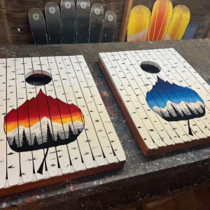 Our Ski Cornhole Board Sets are VERY popular and really fun! Upgrade any outdoor event with our unique hand-painted Cornhole Board Sets.