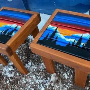 Our popular Ski top Side Tables are always a hit. They’re the perfect size to complement your living room, with ample room to set down your phone, drinks, books, and dinner plates. They have a 400lb. weight capacity so are sturdy enough to sit on – making them an ideal boot bench for your hallway! You can also bring one outdoors and use it as a side table between your ski chairs.