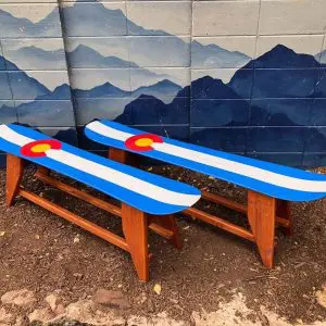 These stylish bench’s are made from repurposed snowboards, ideal for any lover of the slopes. Transform your space into a sporty, yet stylish display. Reminisce good memories with family and friends on this unique piece of Colorado gear! Built with quality in mind, this bench offers both comfort and durability.