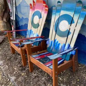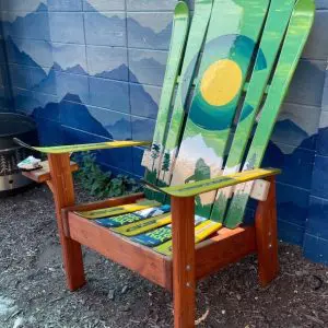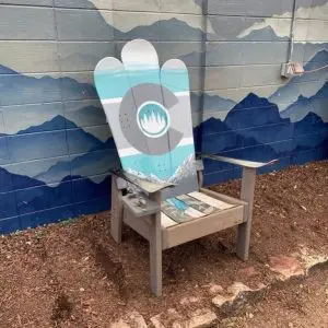 Teal/Turquiose Colorado Flag Mountain Mural Hybrid Ski & Snowboard Grey Stained Base Chair is perfect for any skier or snowboarder who takes on the challenging trails in the Colorado mountains! Wheter you like backcountry, or even ski resorts in Colorado is a great way to get outdoors any time of year when you’re not out snowboarding or skiing! And we celebrate the enthusiastic snow sports lovers we know with the mural on this chair!