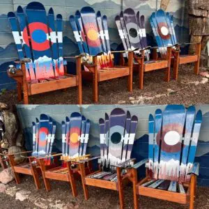 The Set of 2 – Premium Adirondack Ski Chairs – Request the colors you want!. Hand painted, strong, durable, beautiful and totally Coloradical!