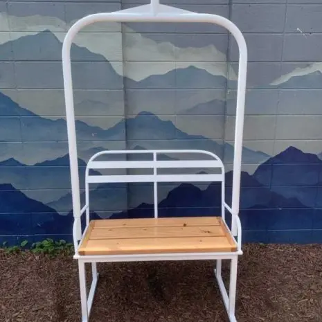 This white 2 person ski lift bench is truly unique. Put it in your backyard for a relaxing seating area or even right outside a store front for a special atmosphere. Sit back and let your trouble melt away and let your smile grow as you recall all your best days on the slopes with friends and family!