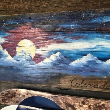Colorado Night Mural Barnwood Flag (medium) hand painted with oil on repurposed barnwood. Medium sized makes a perfect addition to any room in your home, cabin, condo or as a gift! 24″ Wide & 14″ Tall.