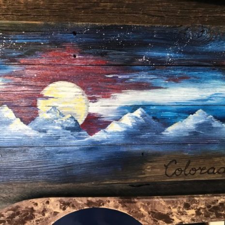 Colorado Night Mural Barnwood Flag (medium) is a hand painted on barnwood, these one of a kind wall flags will impress in any room of the house, or make the perfect gift for a colleague, friend, or loved one! We can also do them on skis, snowboards, hockey sticks, cross country skis, wake boards, water skis or various types of wood including pine, Douglas fir, recycled pallets and more!