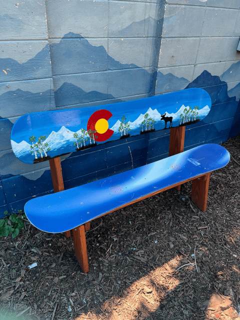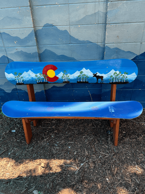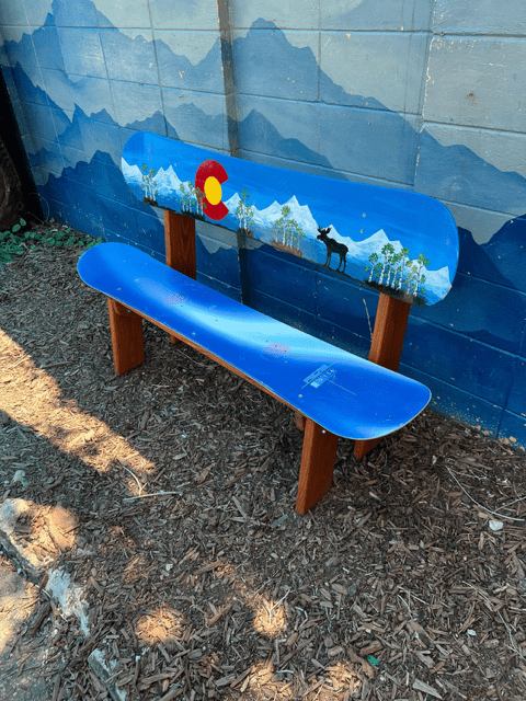 Colorado Bear Mural Snowboard Benches are super popular, timeless and comfortable! Order some for your deck, fire pit or patio today!