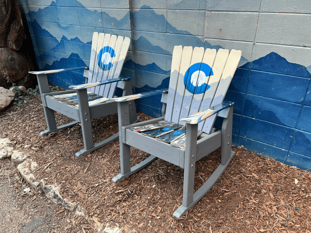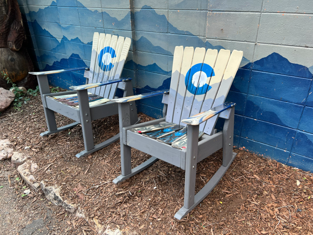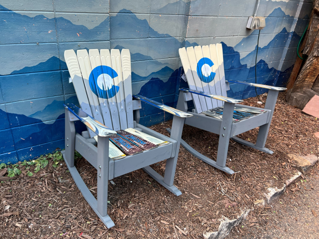 The “Blue/Grey CO Flag – Alpine Rocker” Chair – Our NEW Modern Indoor/Outdoor (More Compact Design) Ski Chair