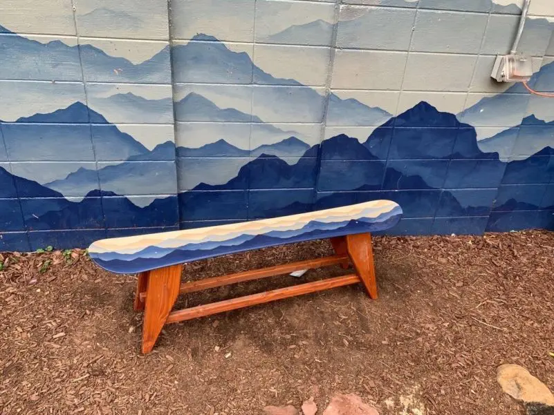 Our Blue Mystic Mountain Mural Single Snowboard Bench offers a sporty outdoor vibe, making it a great addition to any venue. With their stylish appearance, Impress friends and family with your Colorado gear! With extensive customizability, you will have a truly original piece. Built with quality in mind, these chairs offer both comfort and durability.