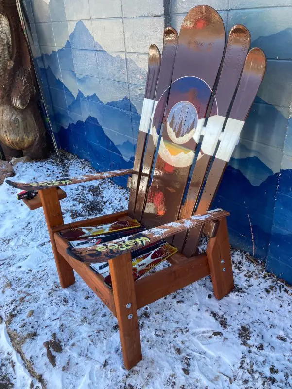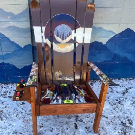 Our chairs are all hand made from scratch right here in Colorado from recycled skis, quality lumber and hardware, and lots of love and care! We’ve grown tremendously in quality and craftsmanship the past 5 years and offer a much higher quality product than we did in our early years. We make it look easy but our furniture takes a lot of time, attention to detail and many steps to complete and keep our customers happy.
