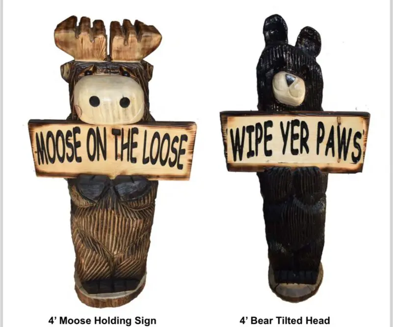 Large wooden bears are 36-48″ tall! Super fun, lots of options! We will text you options within 24 hours of ordering. Or text us and we can send you options prior to ordering #303-775-7273.