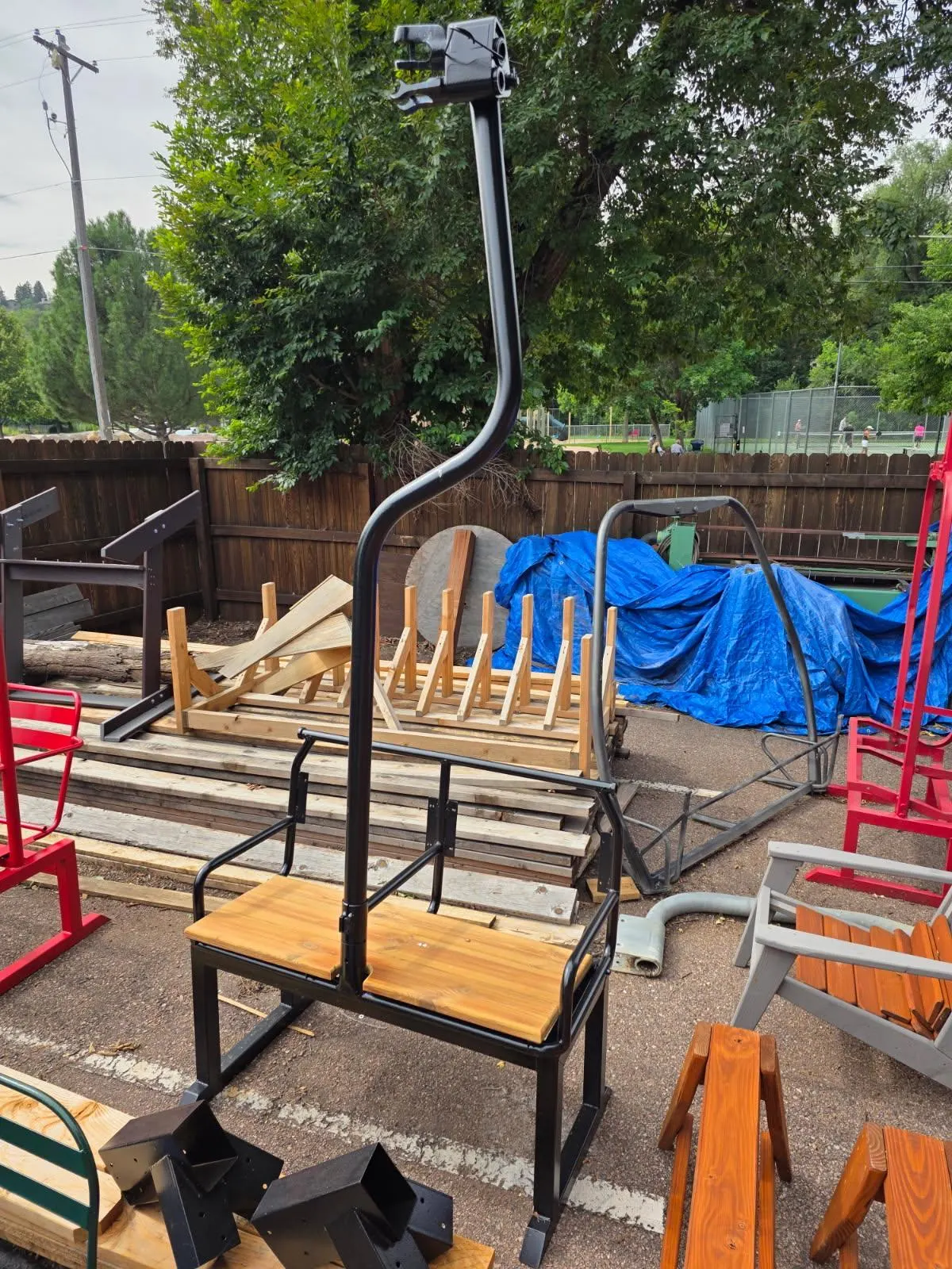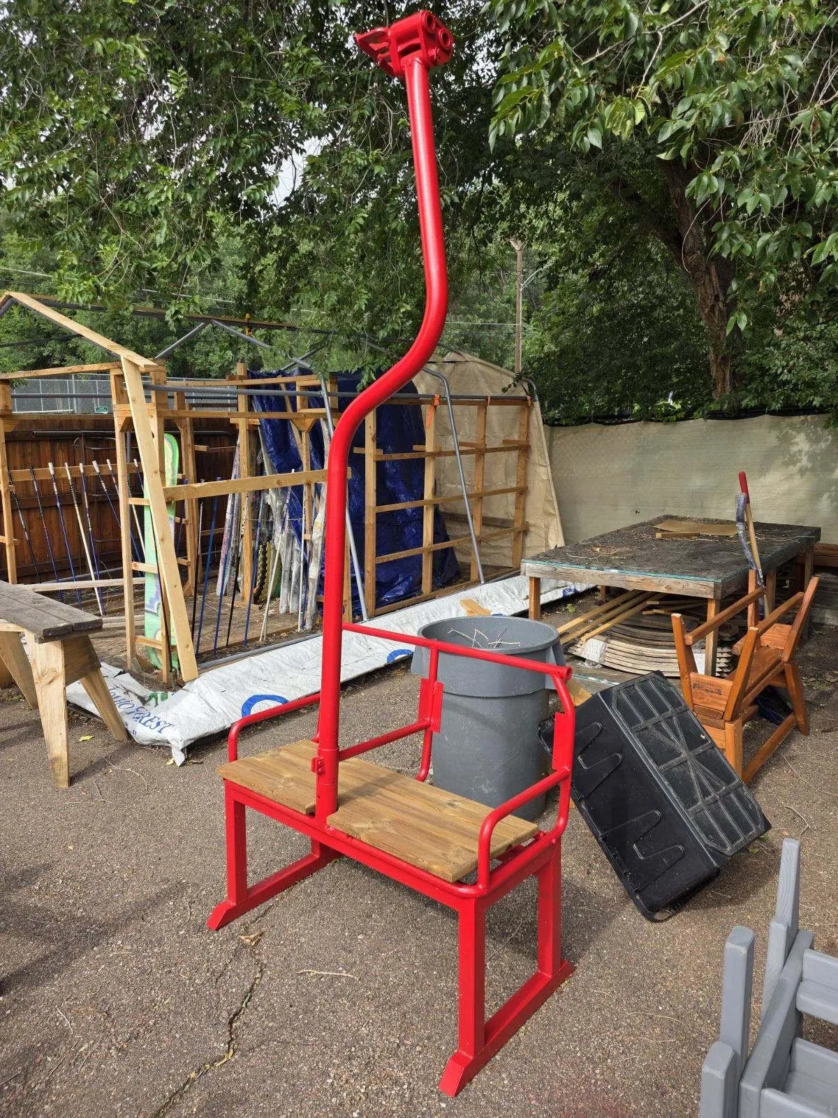 Repurposed Ski Chairlift Bench! We will weld a stand up frame OR a hanging swing mount and you can pick your powder coat color from cardinalpaint.com. We will also add a nice new wooden seat and stain it any color. The original Red Chair brought skiers up to the Roundhouse from 1965 to 1992, Whistler Museum, Whistler Mountain collection, 1970s.
