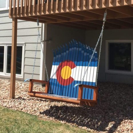 Colorado Flag Ski Porch Swings are super popular, timeless and comfortable!  Order some for your deck, firepit or patio today!