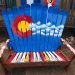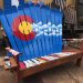 Our Signature Hand painted Colorado Mountain Adirondack Ski Bench!