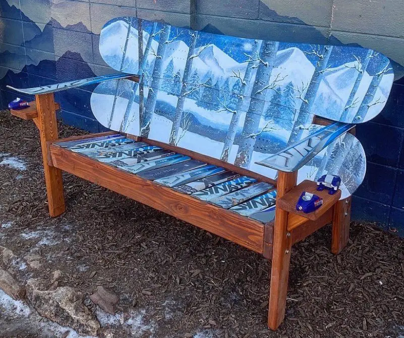 This stylish bench is made from repurposed snowboards and skis, ideal for any lover of the slopes. Transform your space into a sporty, yet stylish display. Reminisce good memories with family and friends on this unique piece of Colorado gear! Built with quality in mind, this bench offers both comfort and durability.