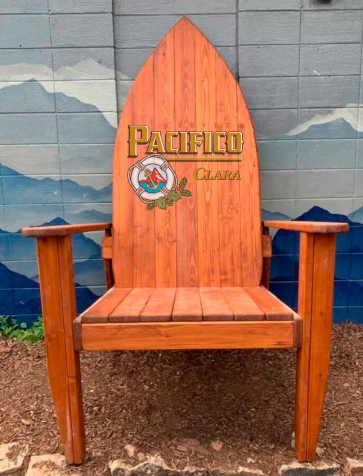 Colorful 84″ Surf Themed XXL STAINED Wooden Chair w/Logo