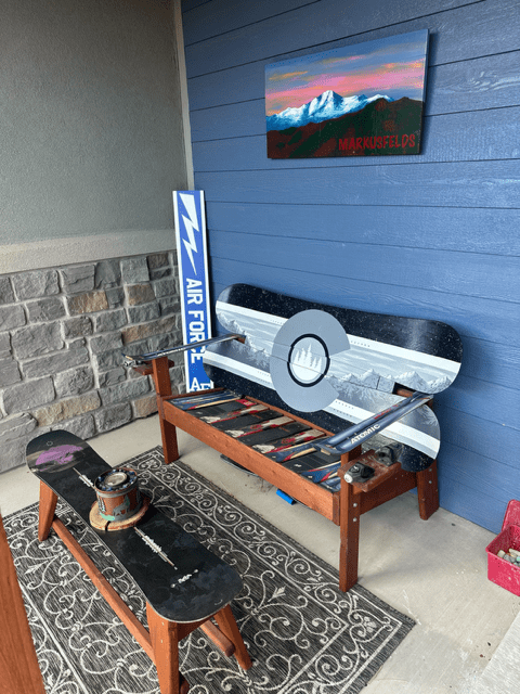 Hand painted designs like our Grey/ Black/ Silver Colorado Snowboard Bench take time and are made to last in the elements. We hand paint almost all of our designs with exterior oil paint and make sure you’ll get a product that’s both beautiful and durable. We charge $75/hour for customization so think about what you’d like to add to your unique design and we can add just about anything you can dream up!