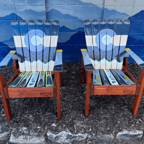 Constructed from retired skis on a Douglas Fir base, all of our furniture is incredibly durable and made to last wear and tear of indoor or outdoor elements.