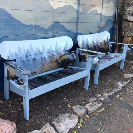 These stylish bench’s are made from repurposed snowboards, ideal for any lover of the slopes. Transform your space into a sporty, yet stylish display. Reminisce good memories with family and friends on this unique piece of Colorado gear! Built with quality in mind, this bench offers both comfort and durability.