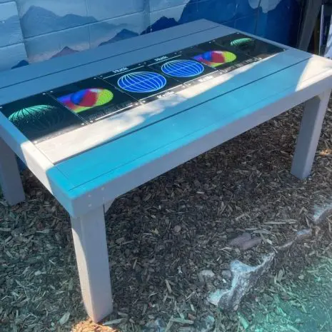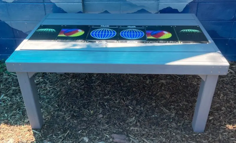 Grey Stained Outdoor Dining Table with Snowboard Runner