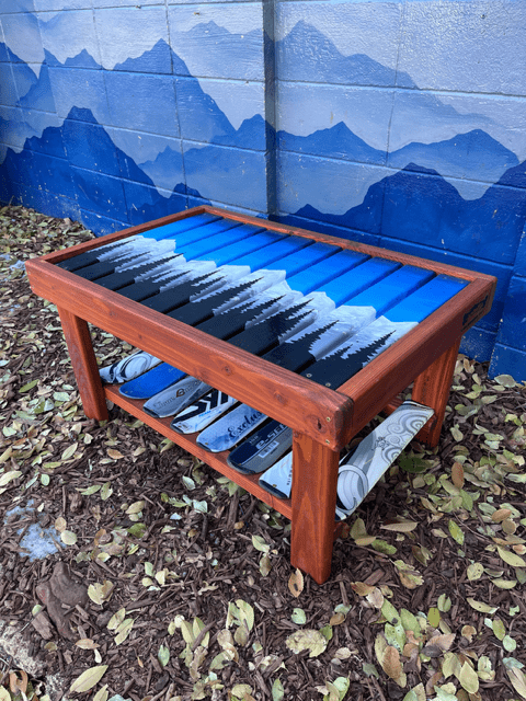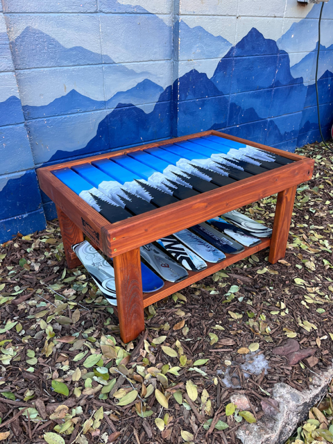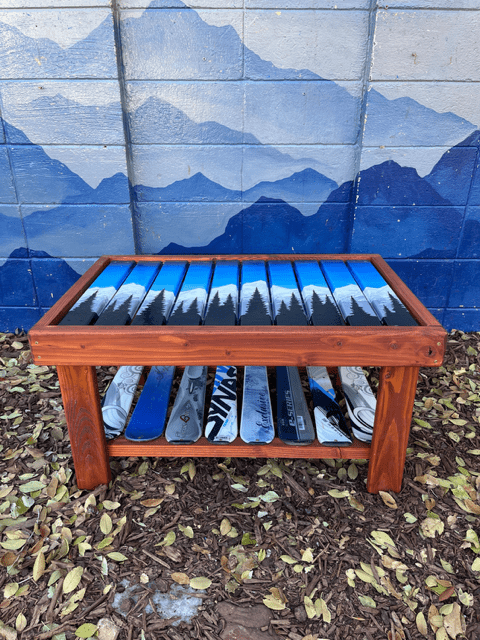 Hand Painted Ski Coffee Table – 36” x 18 x 18” w/shelf