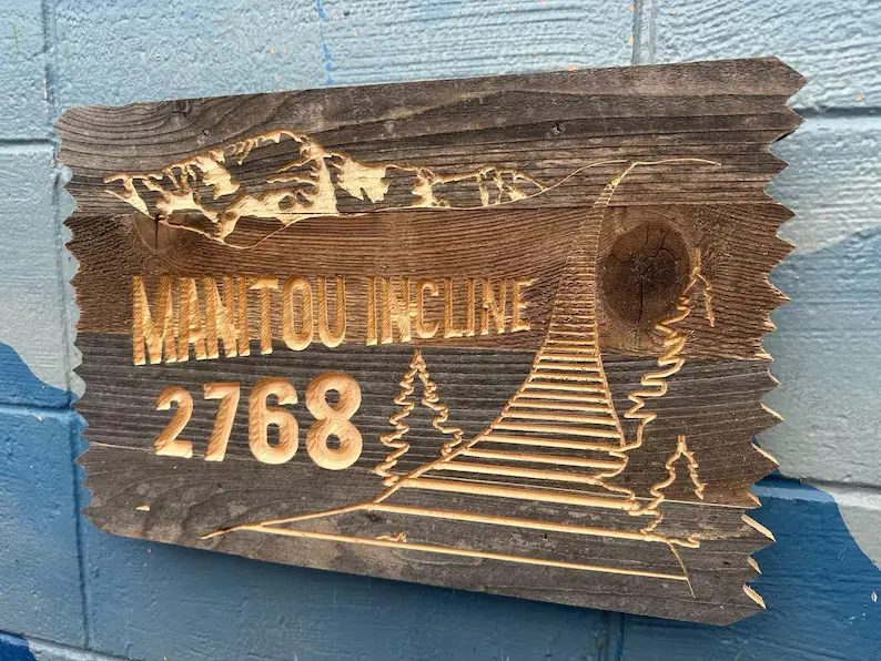 Manitou Incline – Manitou Springs Colorado – 2768 steps – Reclaimed Barnwood Wall Art, Mountain Lifestyle Decor, Barnwood Decor Sign