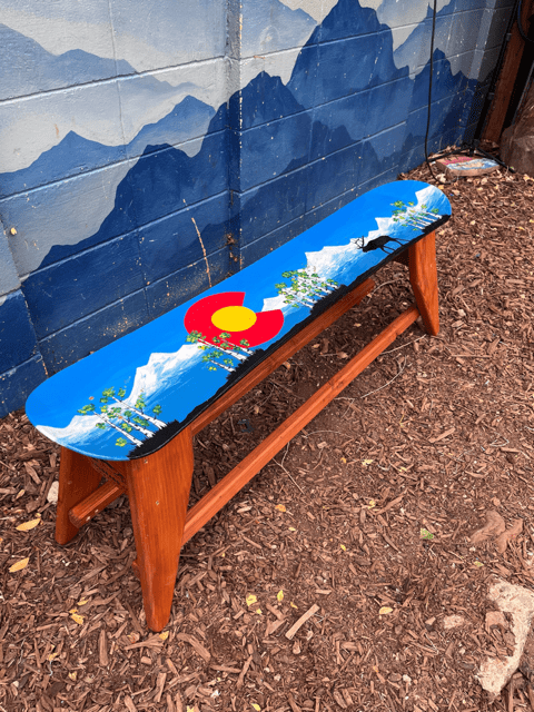 They’re the perfect size to complement your hallway, entryway, front porch living room, with ample room to set down your phone, drinks, books, and dinner plates. Sturdy enough to sit on, they make an ideal boot bench for your hallway! Light enough to bring on any outdoor adventure. Crafted from a single snowboard with ample room to set down your phone, drinks, books, and dinner plates. They have a 300lb. weight capacity so are sturdy enough to sit on – making them an ideal boot bench for your hallway! You can also bring one outdoors and use it as a side table between your ski chairs.