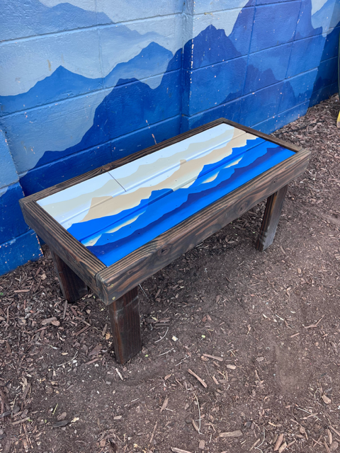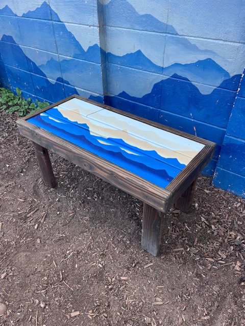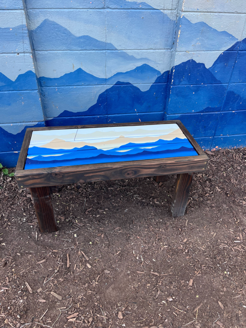 Mystic Mountains – Hand Painted Ski Coffee Table – 36” x 18 x 18”