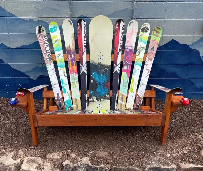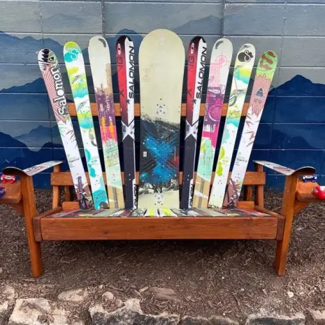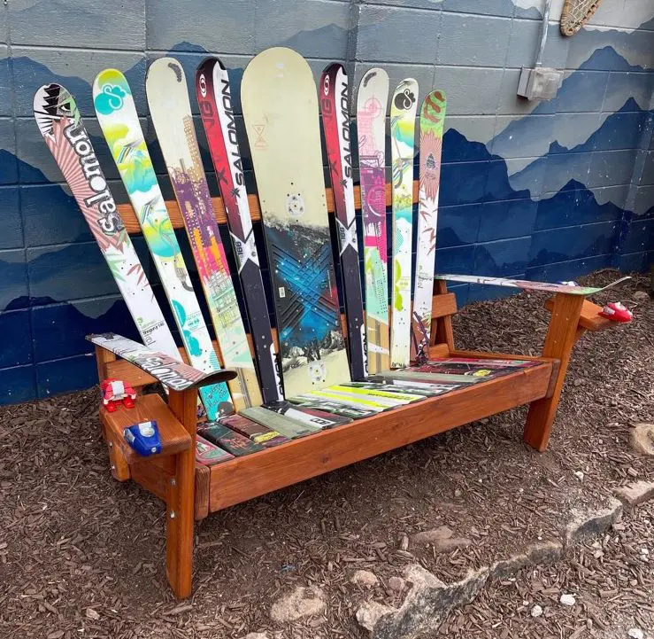 This stylish bench is made from repurposed skis, ideal for any lover of the slopes. Transform your space into a sporty, yet stylish display. Reminisce good memories with family and friends on this unique piece of Colorado gear! Built with quality in mind, this bench offers both comfort and durability.