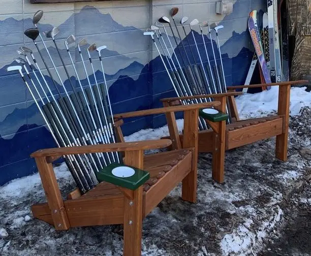 Classic adaptation of our ski chair, our SENTIMENTAL Golf Club Adirondack Rocking Chairs with Putting Green Cupholder sits just as comfortably and is equally stylish and durable. Send us your old clubs and let us create you a chair to remember. Matching Ottomans are optional as well! Looks great everywhere and will easily be a favorite chair in no time.
