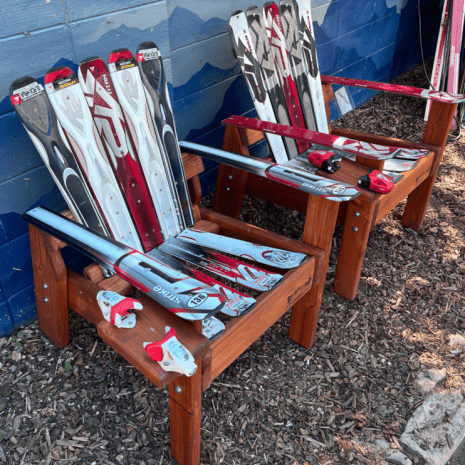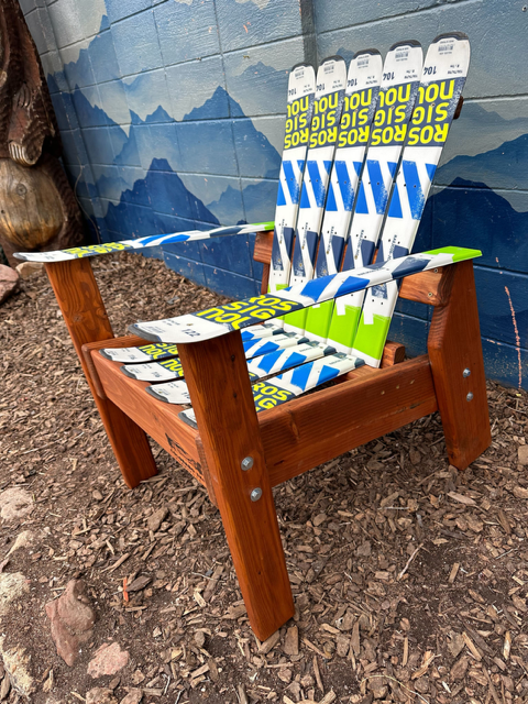 You get to customize this chair by requesting the wood stain & ski colors you want! Constructed from retired skis on a Douglas Fir base, all of our furniture is incredibly durable and made to last wear and tear of indoor or outdoor elements.