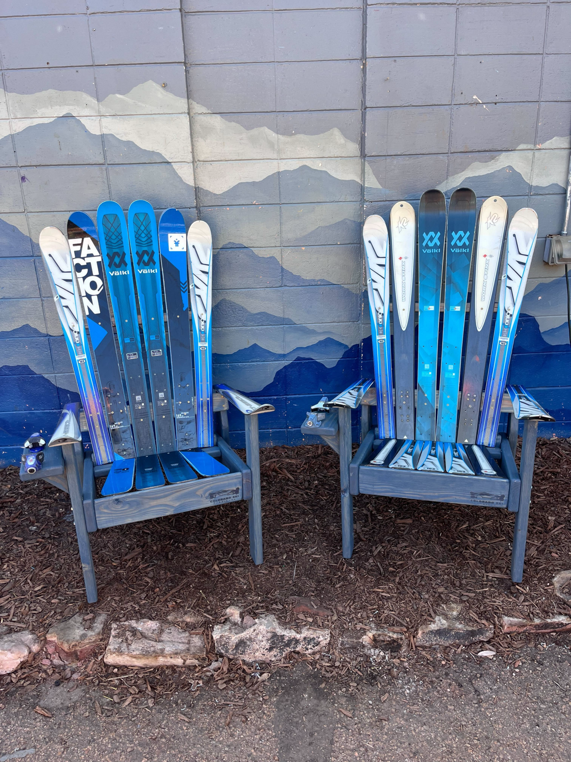The Set of 2 – Premium Adirondack Ski Chairs – Request the colors you want!. Hand painted, strong, durable, beautiful and totally Coloradical!