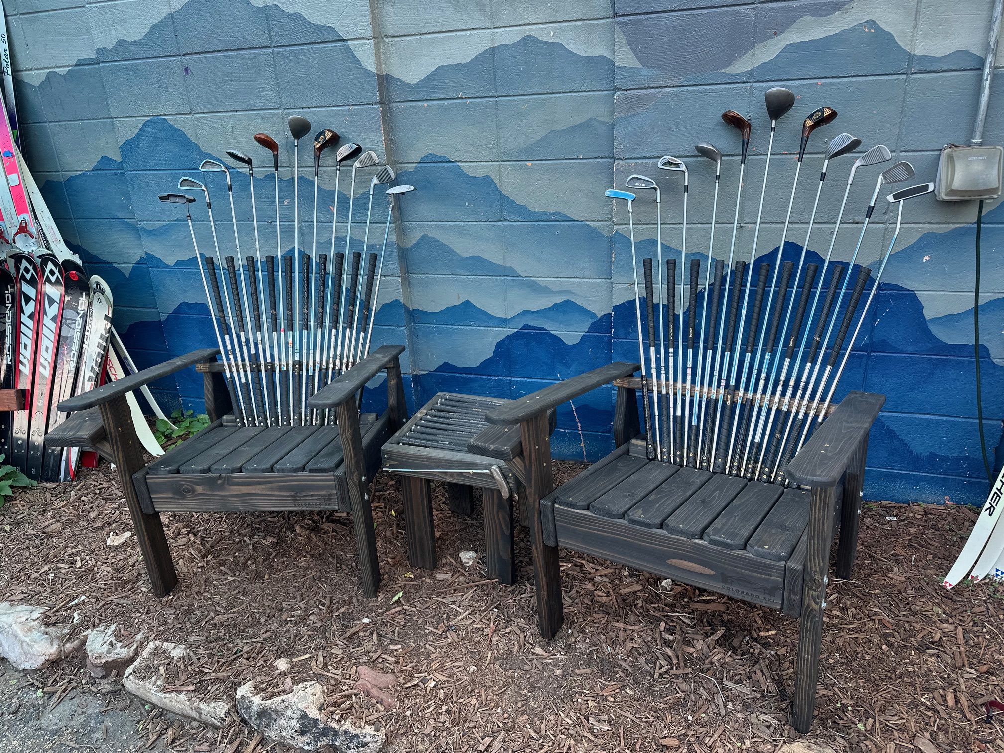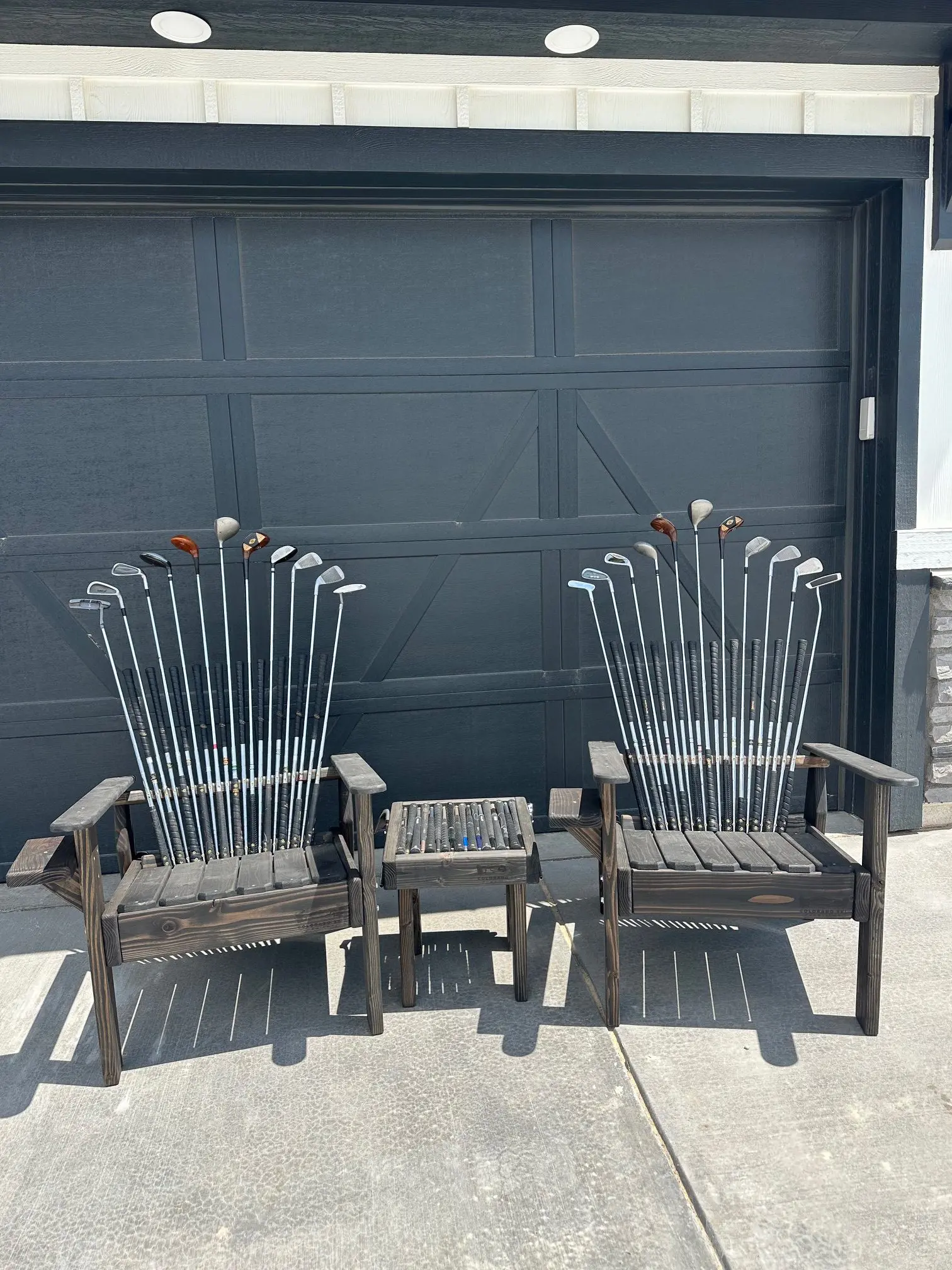 Classic adaptation of our ski chair, our Set of 2 – Dark Walnut Golf Club Chairs with Putting Green Cupholder sits just as comfortably and is equally stylish and durable.
