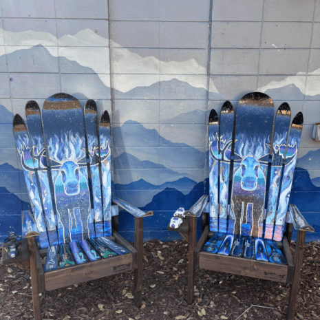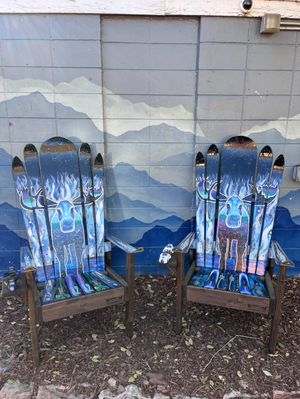 Mystic Moose Mural Adirondack Ski Chair, a hand-painted beauty you’ll love for years to come!
