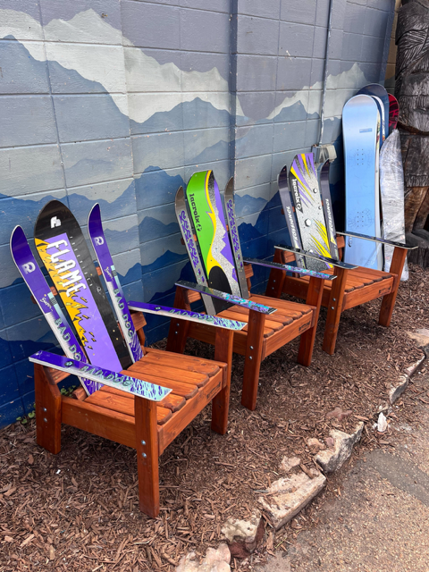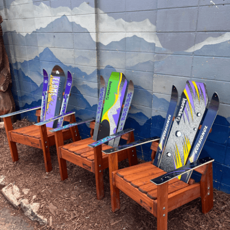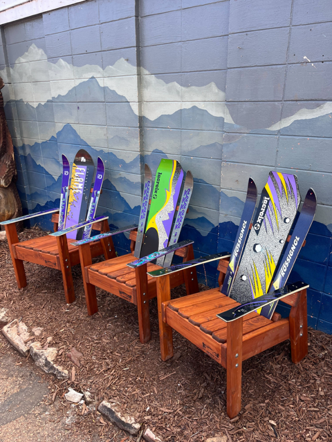 You get to customize this chair by requesting the wood stain & ski colors you want! Constructed from retired skis on a Douglas Fir base, all of our furniture is incredibly durable and made to last wear and tear of indoor or outdoor elements.