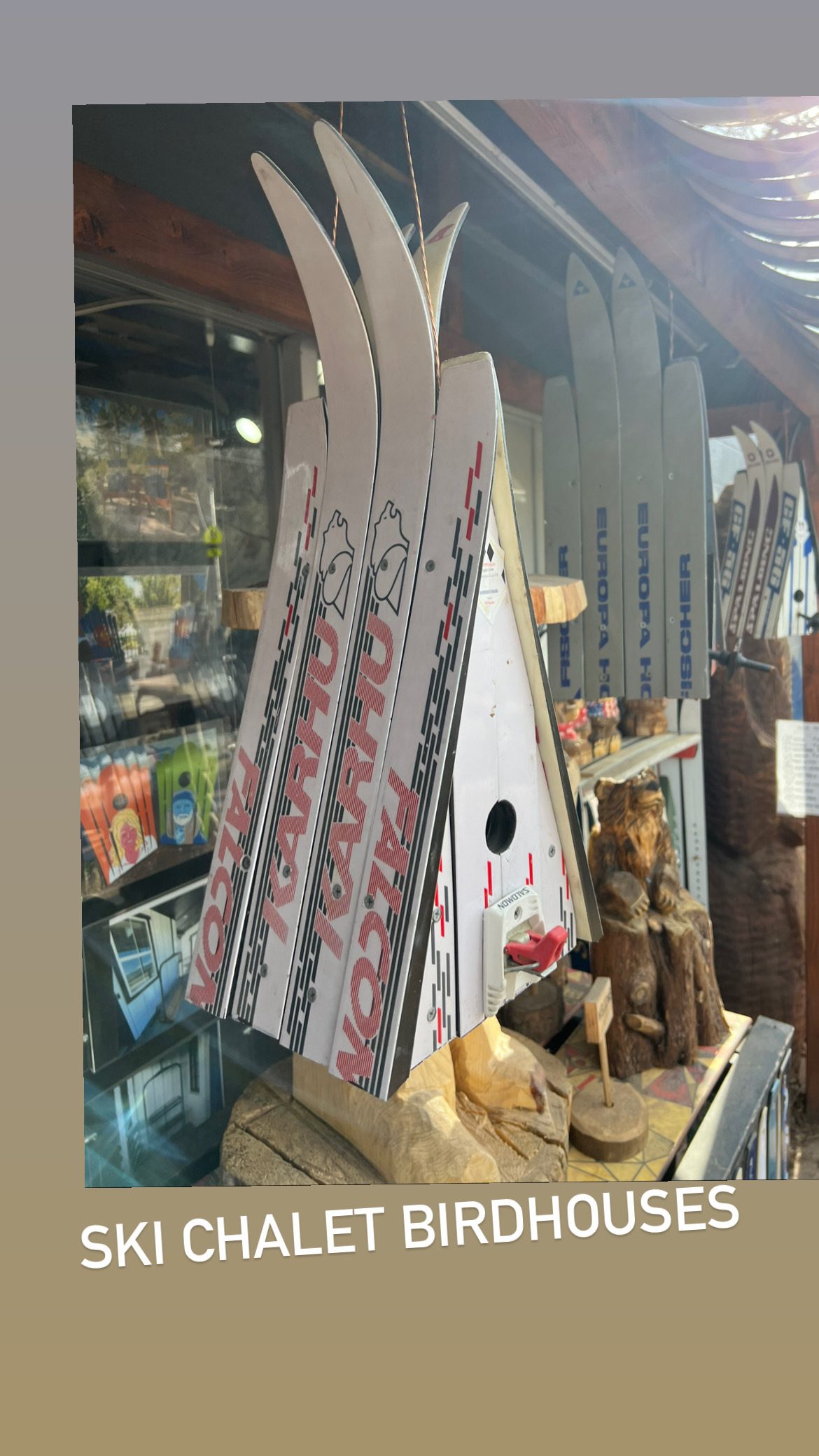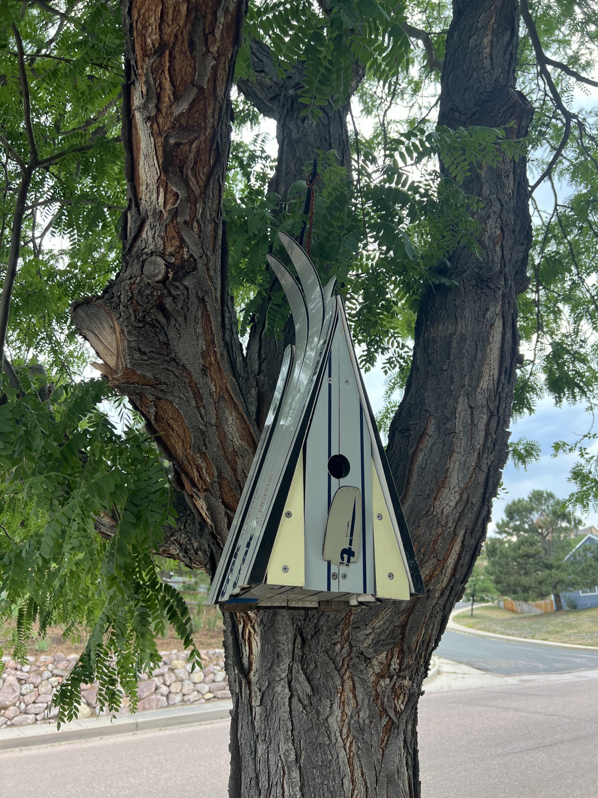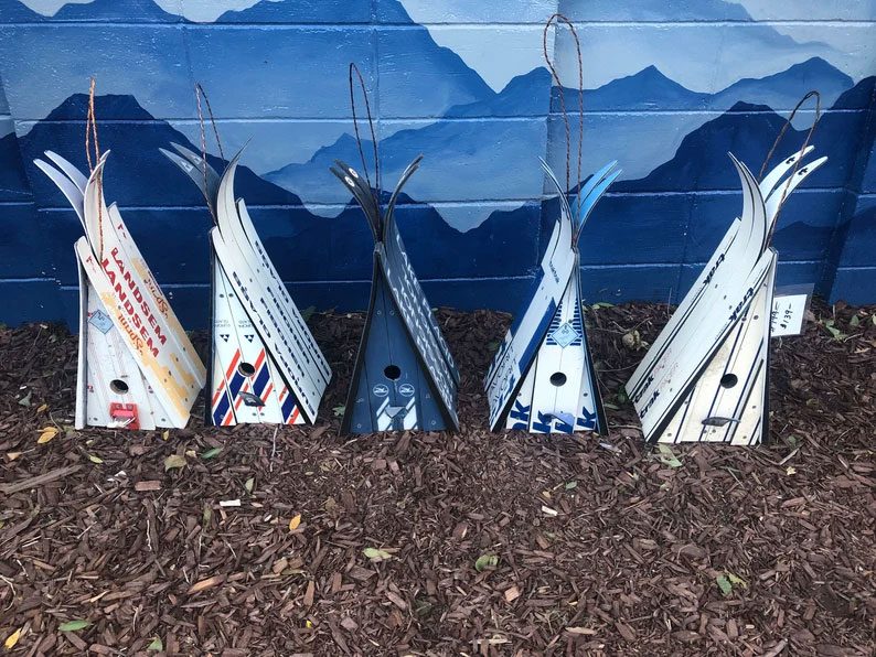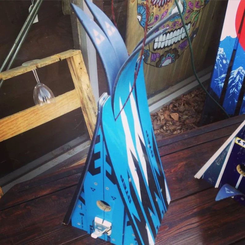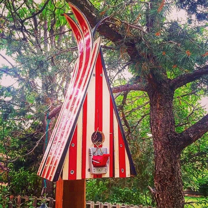 Ski Chalet Birdhouse, One of a kind, Unique gift idea for bird lovers, Real Skis, Outdoor Decor, Colorado Lifestyle, Recycled Skis Repurposed