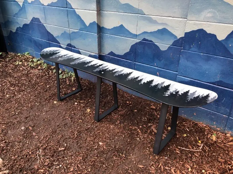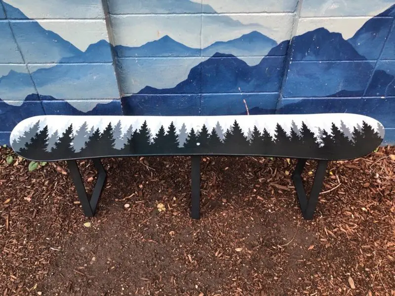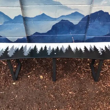 Hand painted designs like our Sunset Mountain Mural Snowboard Bench take time and are made to last in the elements. We hand paint almost all of our designs with exterior oil paint and make sure you’ll get a product that’s both beautiful and durable. We charge $75/hour for customization so think about what you’d like to add to your unique design and we can add just about anything you can dream up!