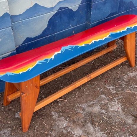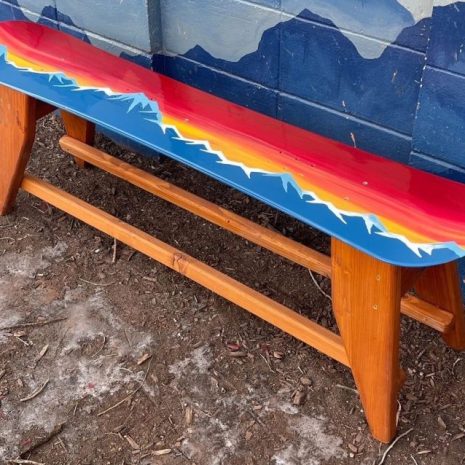 They’re the perfect size to complement your hallway, entryway, front porch living room, with ample room to set down your phone, drinks, books, and dinner plates. Sturdy enough to sit on, they make an ideal boot bench for your hallway! Light enough to bring on any outdoor adventure. Crafted from a single snowboard with ample room to set down your phone, drinks, books, and dinner plates. They have a 300lb. weight capacity so are sturdy enough to sit on – making them an ideal boot bench for your hallway! You can also bring one outdoors and use it as a side table between your ski chairs.