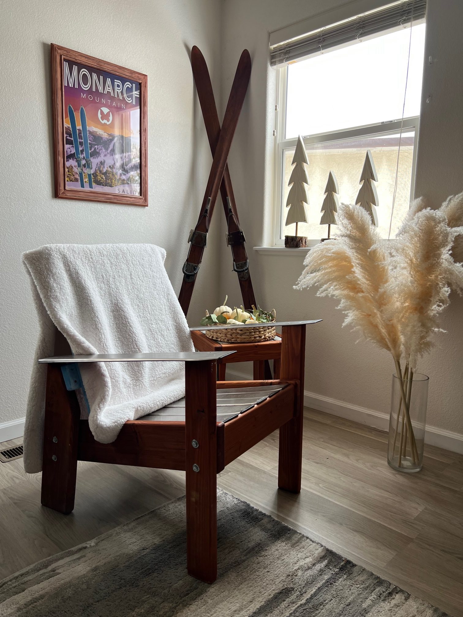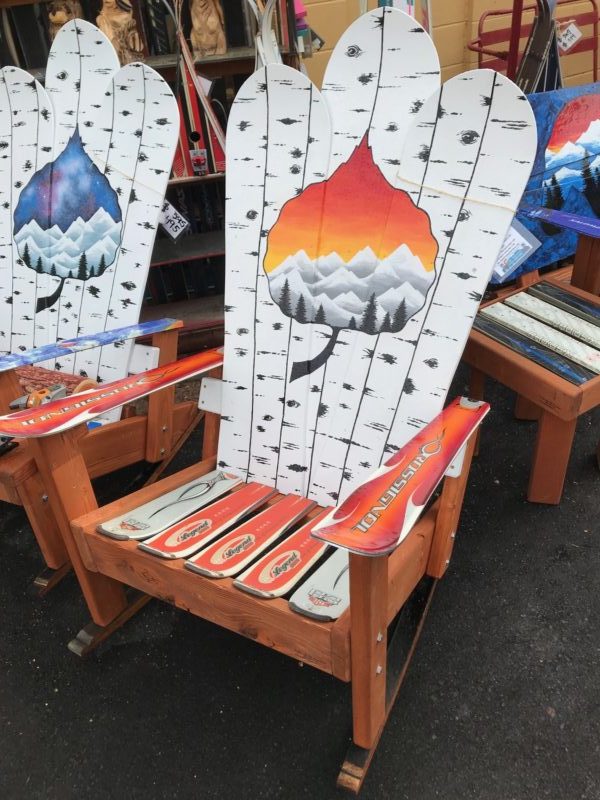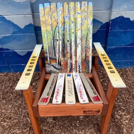 Constructed from retired skis on a Douglas Fir base, all of our furniture is incredibly durable and made to last wear and tear of indoor or outdoor elements.