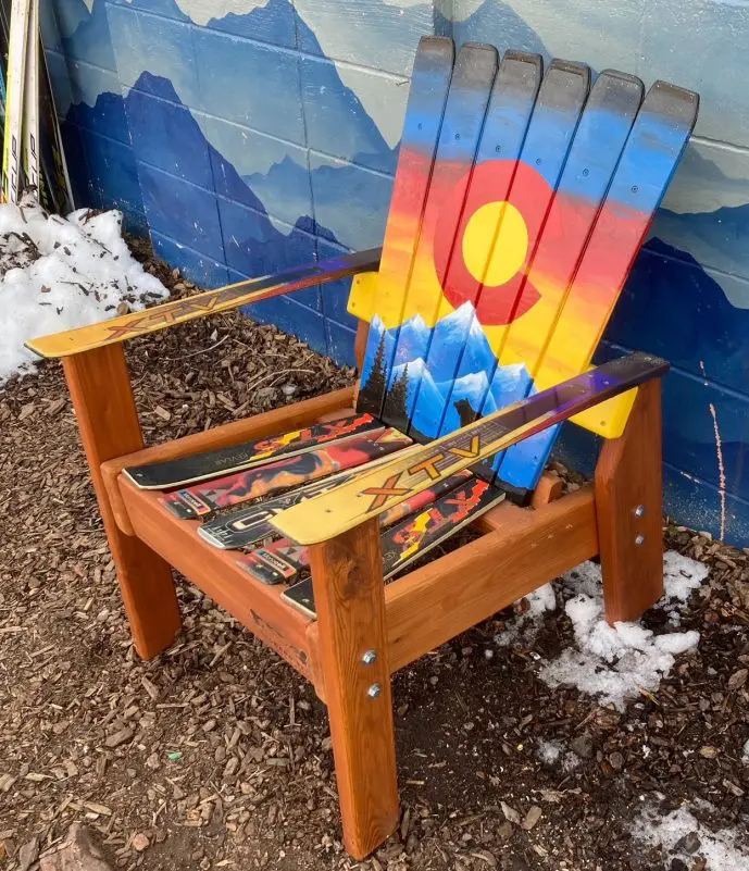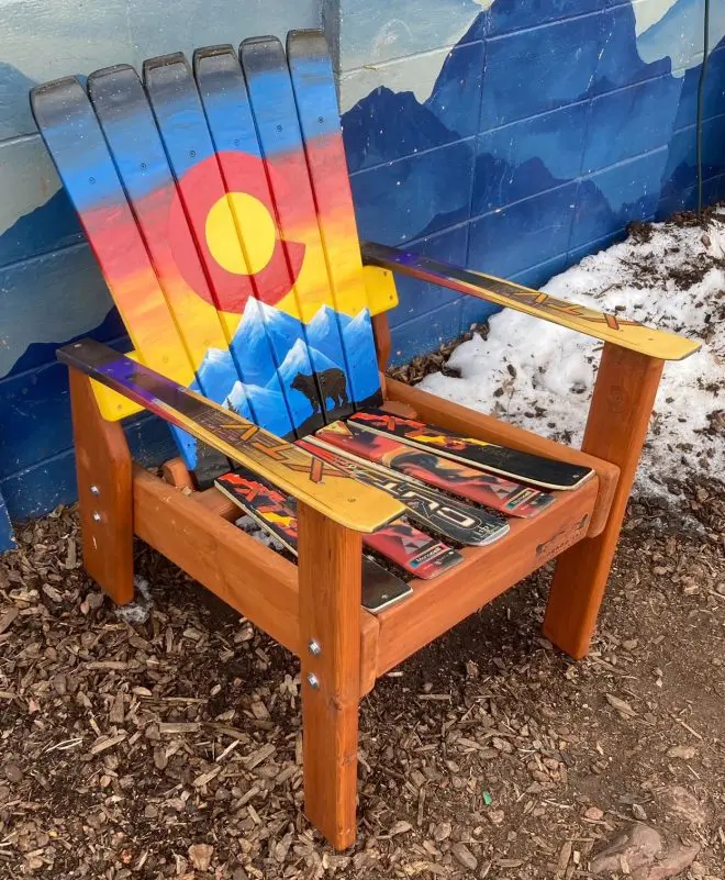 Constructed from retired skis on a Douglas Fir base, all of our furniture is incredibly durable and made to last wear and tear of indoor or outdoor elements.