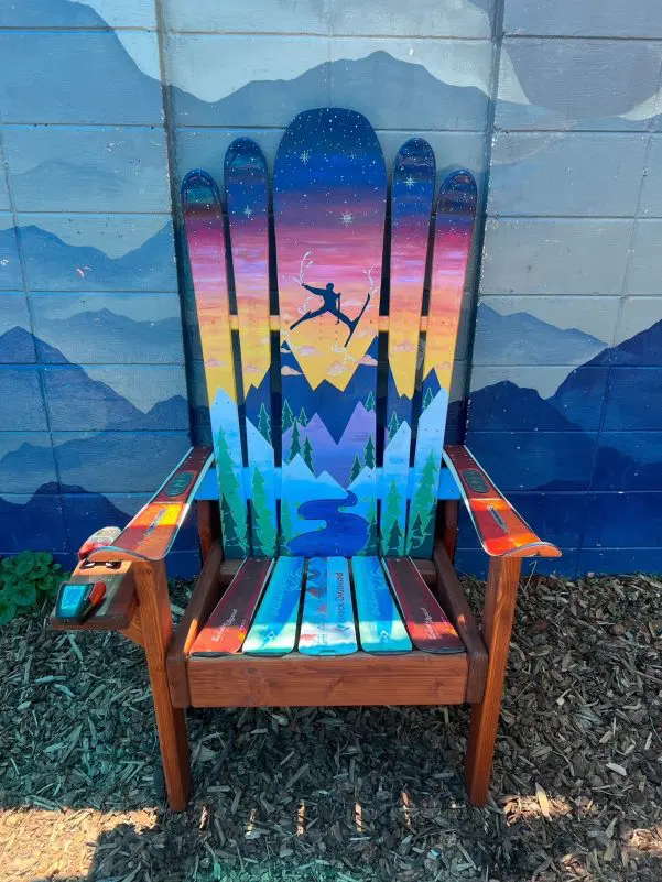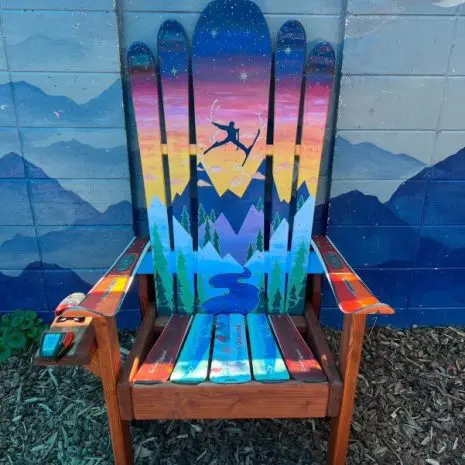 Hand painted designs like our “Wall to Wall DAFFY” – Retro Ski Tricks collection chair take time and are made to last in the elements. We hand paint almost all of our designs with exterior oil paint and make sure you’ll get a product that’s both beautiful and durable. We charge $75/hour for customization so think about what you’d like to add to your unique design and we can add just about anything you can dream up!